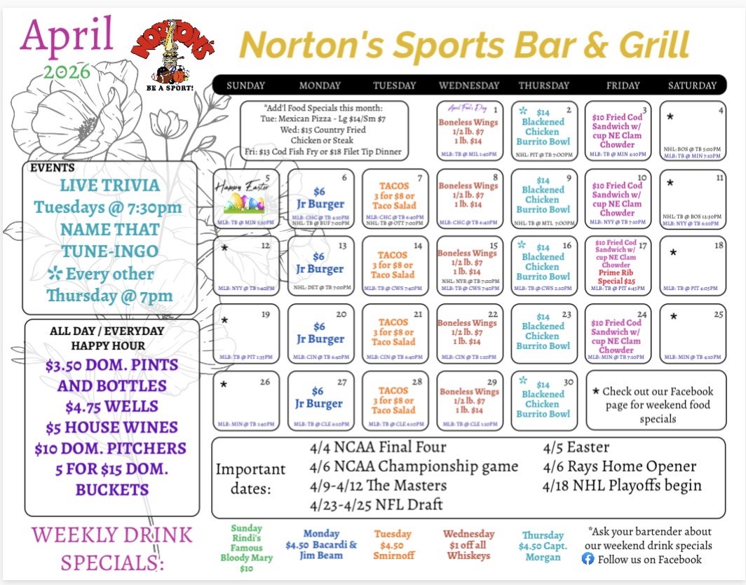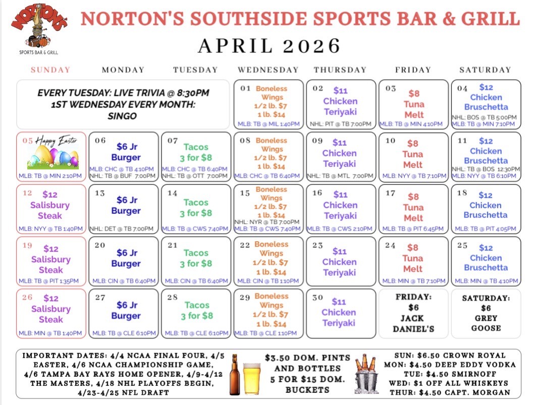 Here You'll Find Our Specials and Events for the month!